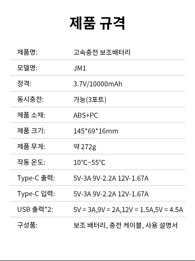 | 품명 및 모델명 | JM1 | KC 인증정보 | 상품 상세페이지 참조 |
