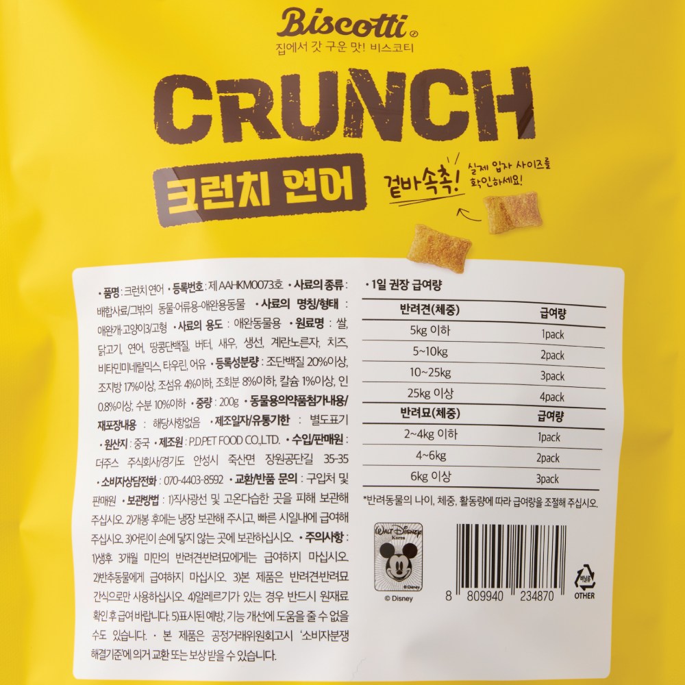 | 품명 및 모델명 | 크런치 연어 | 인증/허가 사항 | 사료관리법에 따른 성분등록번호 : 컨텐츠 참조 |