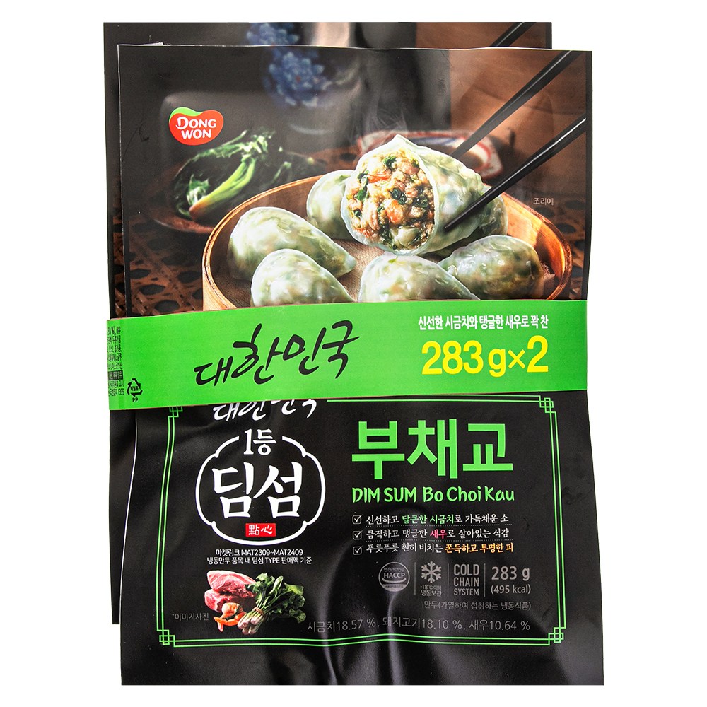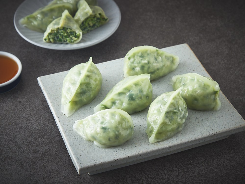 고소한 돼지고기와 탱글탱글한 새우살로 속을 채운 딤섬, 부채교예요. 시금치와 부추의 초록빛이 돋보이는 외관이 입맛을 돋운답니다. 촉촉하게 쪄 드셔도 좋고, 에어프라이어로 바삭하게 구워도 맛있어요. 간단히 조리해 전문점에 온 듯 근사한 맛을 즐겨보세요.