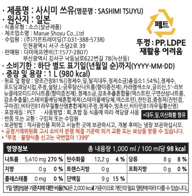 | 포장단위별 내용물의 용량(중량), 수량 | 1L, 1개 | 원재료명 및 함량 | 컨텐츠 참조 |
