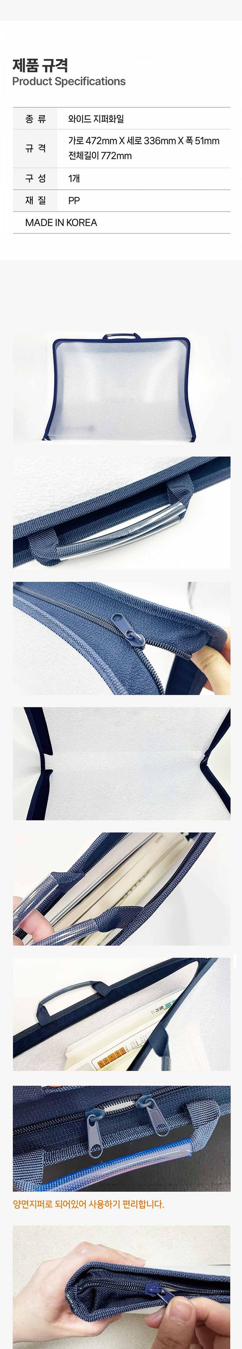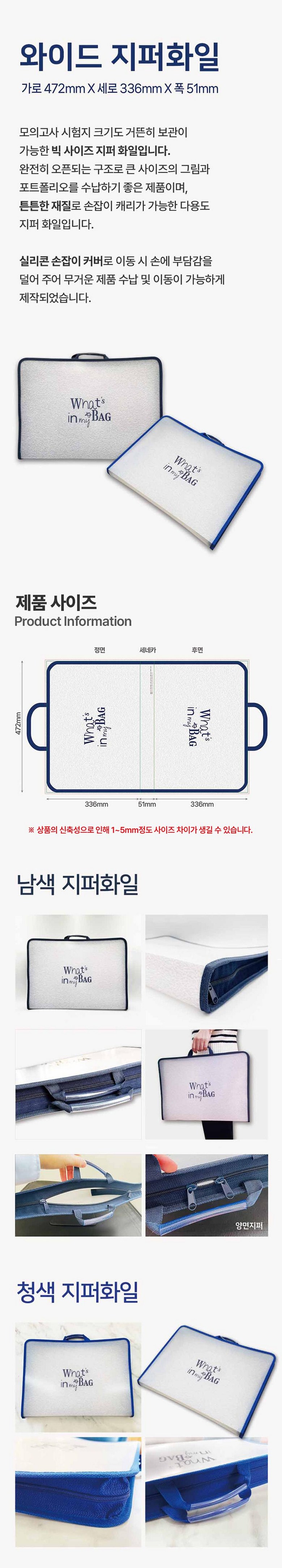 [삼영피피] 광폭 B4 A3 보다 큰 와이드 지퍼화일 화일케이스 수능 학원 가방 이중지퍼, 청색화일, 1개