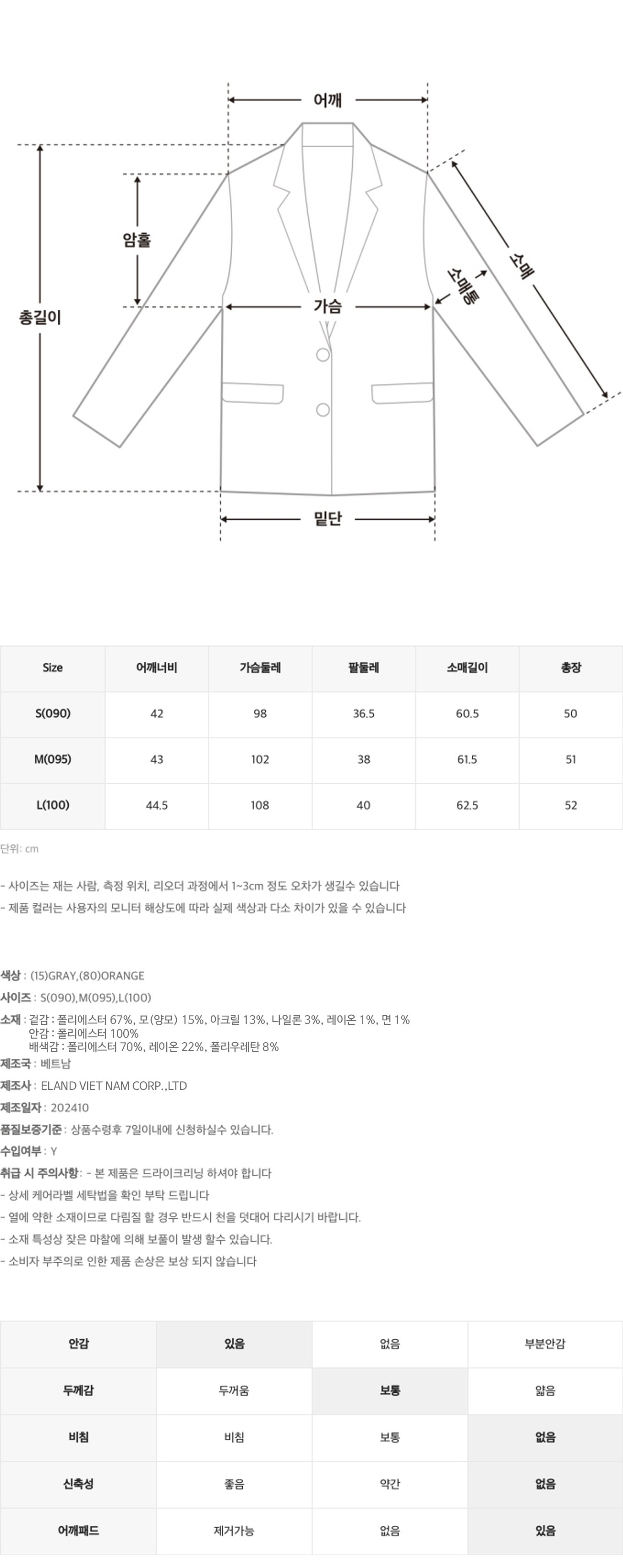 | 치수 | 컨텐츠 참조 | 제조자(수입자) | 컨텐츠 참조 / (주)이랜드월드 |