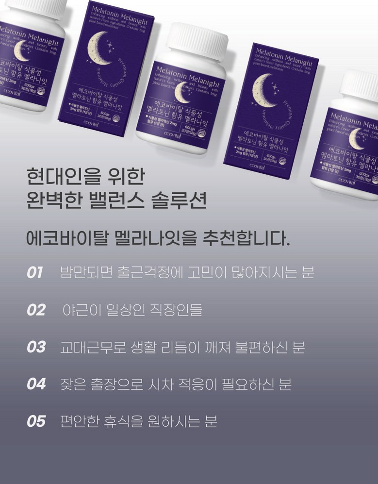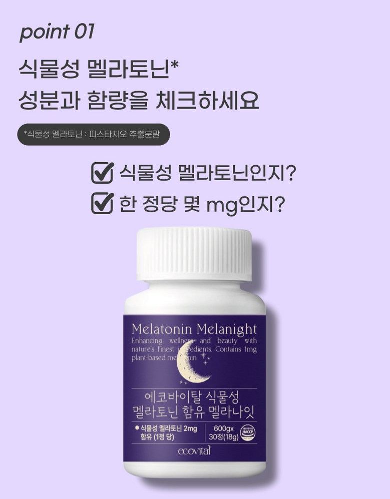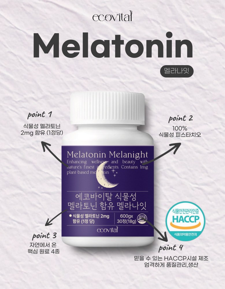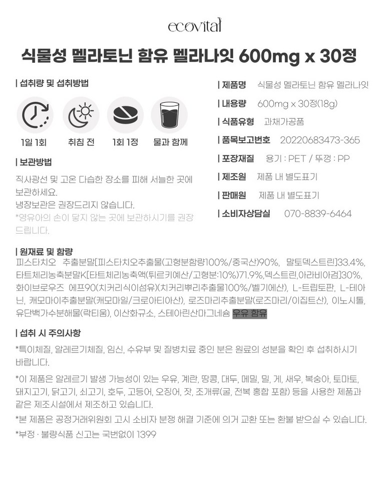 | 제품명 | 에코바이탈 식물성 멜라토닌 함유 멜라나잇 | 식품의 유형 | 과채가공품 |