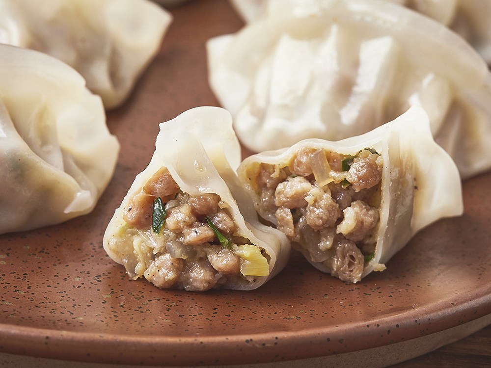 쌀가루를 사용한 피로 빚은 만두예요. 찌면 쫀득하고, 구우면 바삭바삭한 식감이 일품이죠. 여기에 쫄깃한 돼지고기와 부추, 양배추 등 아삭한 채소로 속을 채웠어요. 한 입 베어 물면 고소하고 담백한 풍미가 입안 가득 느껴진답니다.