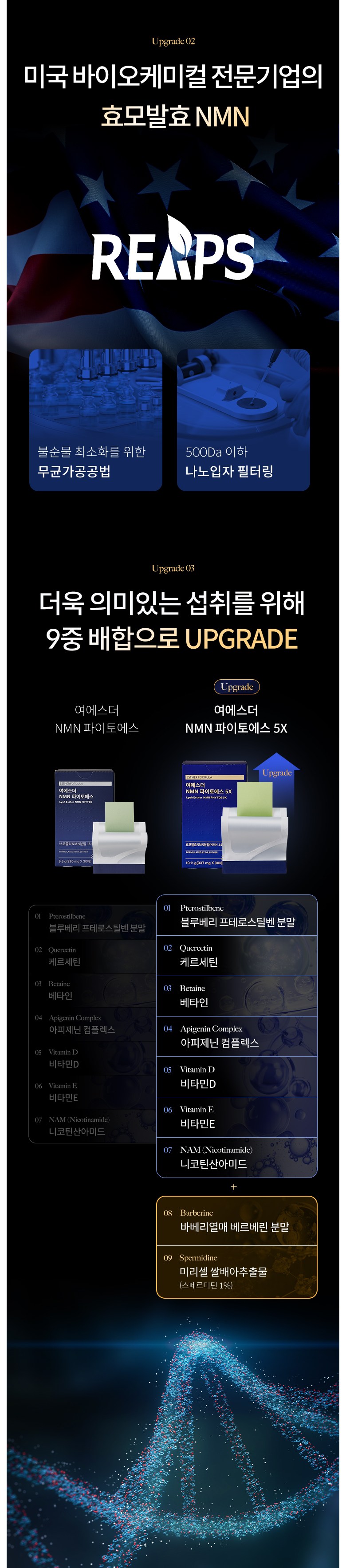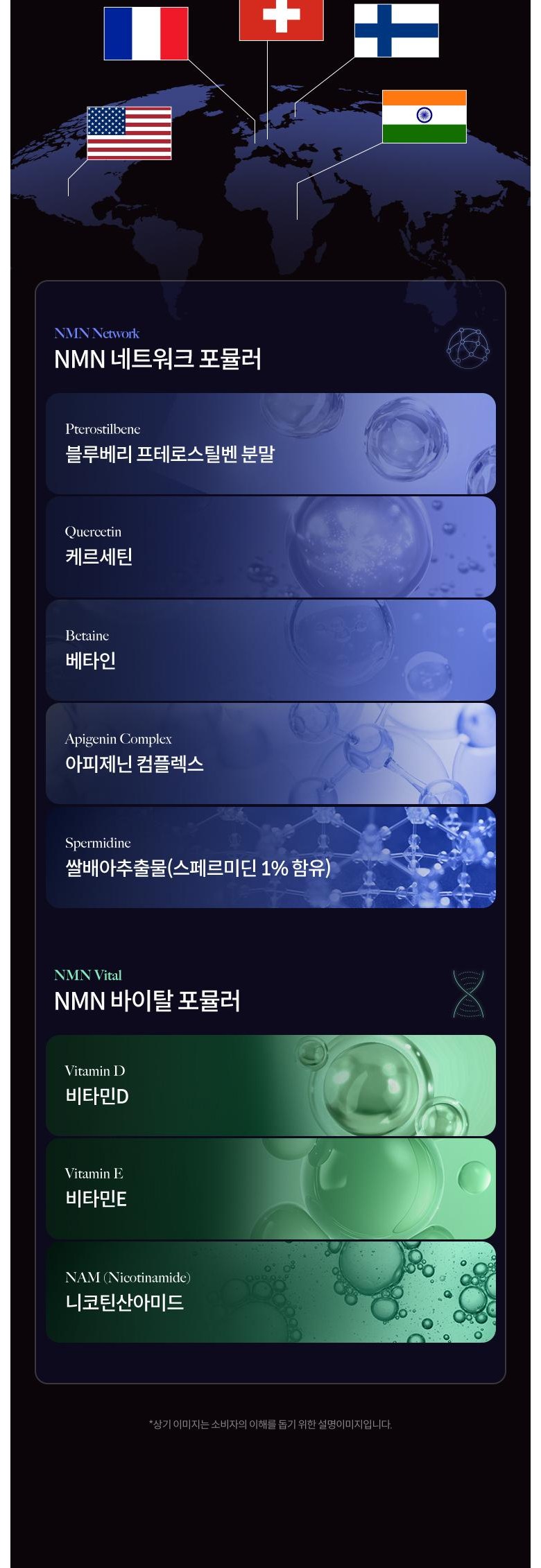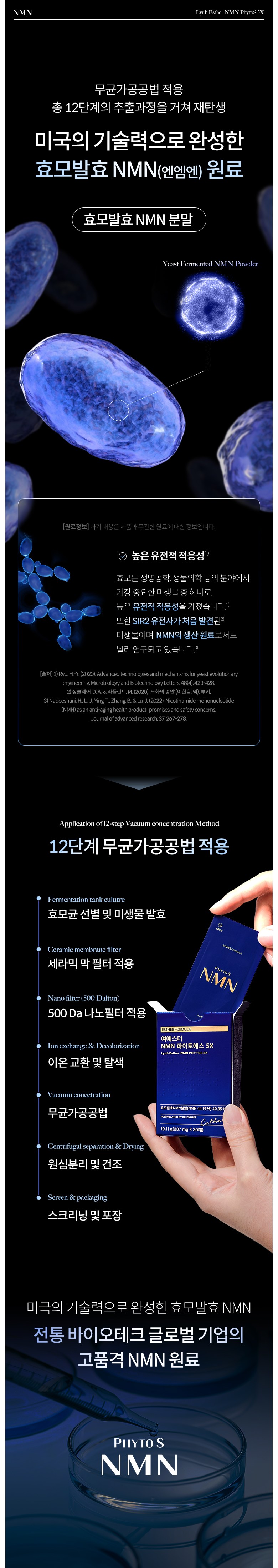 | 원재료명 및 함량 | 효모발효NMN분말[효모발효분말(미국산), 혼합제제(타피오카변성전분, 말토덱스트린)]40.95%, 풀루란, 시르투엔엠엔Ⓡ혼합분말[블루베리 프테로스틸벤 혼합분말(블루베리추출물100%;미국산), 케르세틴, 바베리열매 베르베린 혼합분말(인디안 바베리 열매 추출물분말;인도산), 아피제닌 컴플렉스, 효모발효분말]9.00%, 파인애플과즙분말[덱스트린, 파인애플과즙고형분(파인애플농축액;태국산)], 타트체리농축분말, 엠씨티 분말, 향료(복숭아향), 효소처리스테비아, 글리세린, 폴리소르베이트80, 레몬과즙분말, 니코틴산아미드, 히드록시프로필메틸셀룰로스, 구연산, 베타인, 미리셀 쌀배아추출물, 식용색소청색제1호(착색료) 알레르기 주의 물질: 우유, 복숭아 함유 | 영양성분 | 상품 상세페이지 참조 |