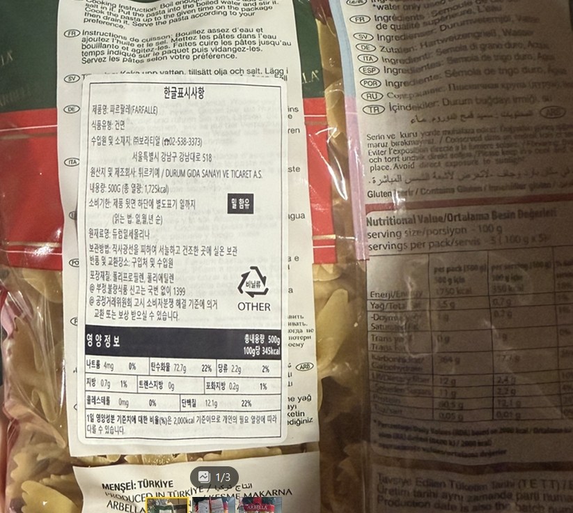 | 포장단위별 내용물의 용량(중량), 수량 | 500g x 4개 | 원재료명 및 함량 | 컨텐츠 참조 |