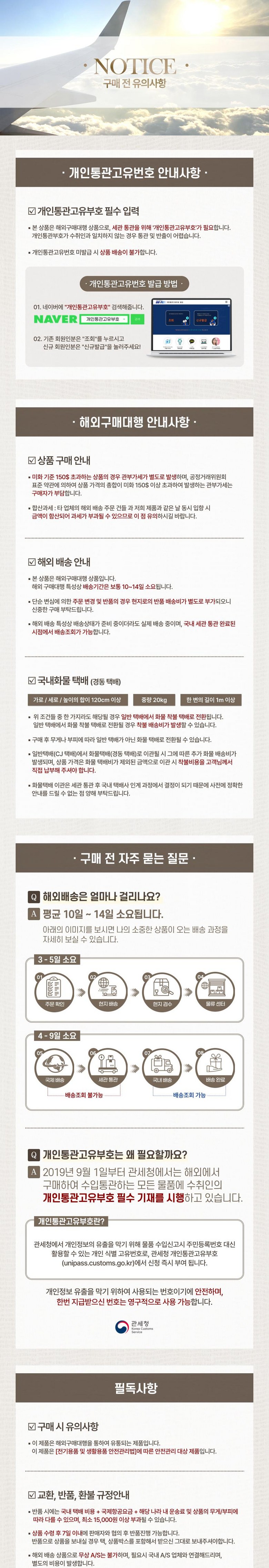 | 배송방법 | 해외직구 | 배송비 | 무료배송 · 도서산간 추가 배송비 - 제주 지역: 5,000원 - 도서산간 지역: 5,000원 |