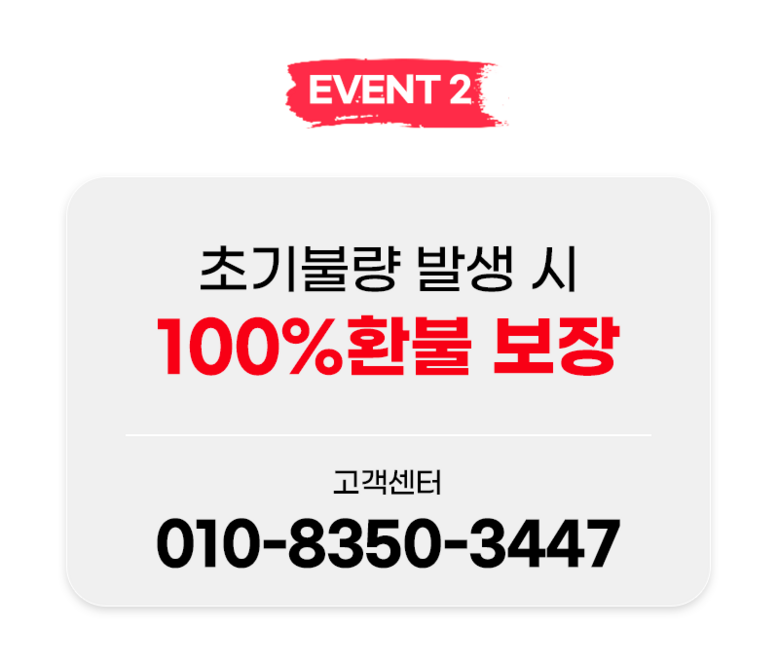 | 교환/반품 신청 기준일 | ㆍ단순변심에 의한 교환/반품은 제품 수령 후 7일 이내까지, 교환/반품 제한사항에 해당하지 않는 경우에만 가능 (배송비용과 교환/반품 비용 왕복배송비 고객부담) ㆍ상품의 내용이 표시·광고의 내용과 다른 경우에는 상품을 수령한 날부터 3개월 이내, 그 사실을 안 날 또는 알 수 있었던 날부터 |
