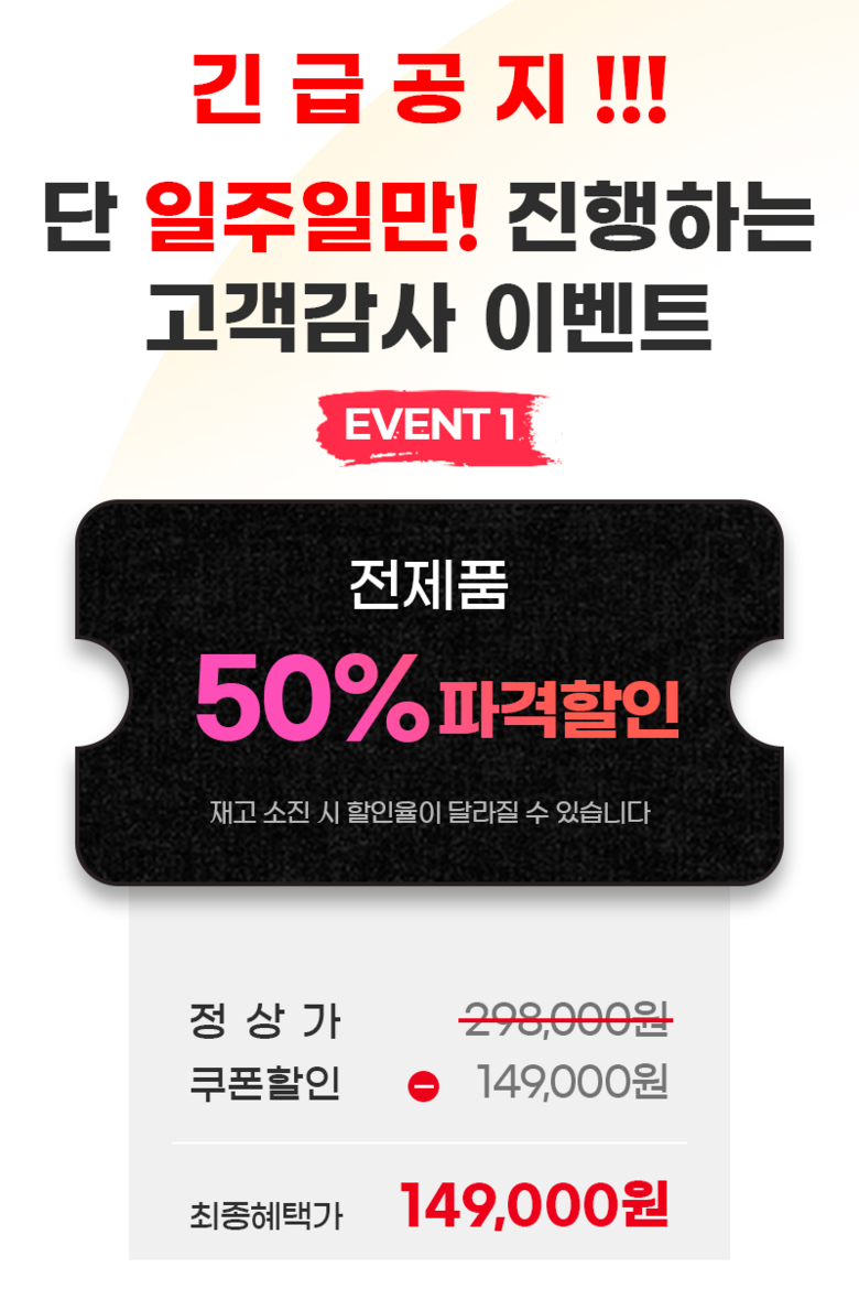 | 교환/반품 비용 (왕복비용) | 50,000원 - 단, 고객 변심의 경우에만 발생 - 도서산간 및 일부 지역 추가비용 발생 |