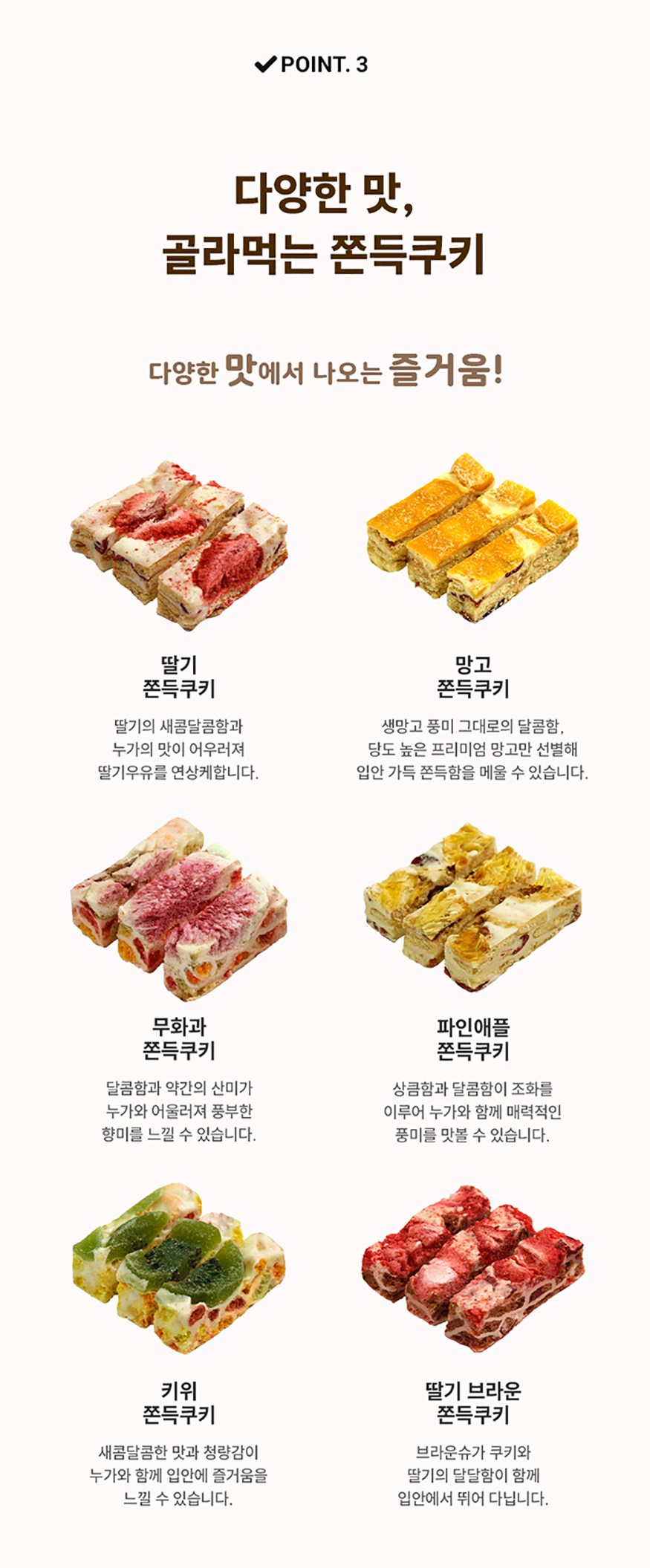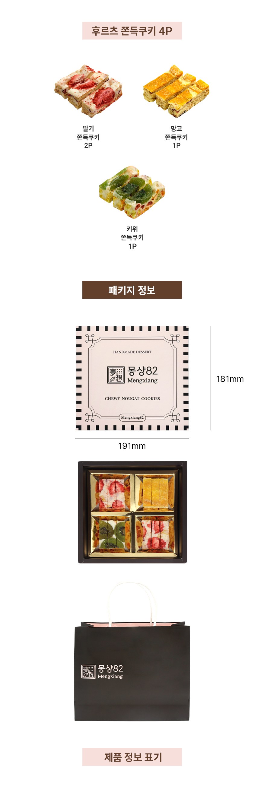 | 제품명 | 후르츠 쫀득쿠키 올인원 4p | 식품의 유형 | 컨텐츠 참조 |