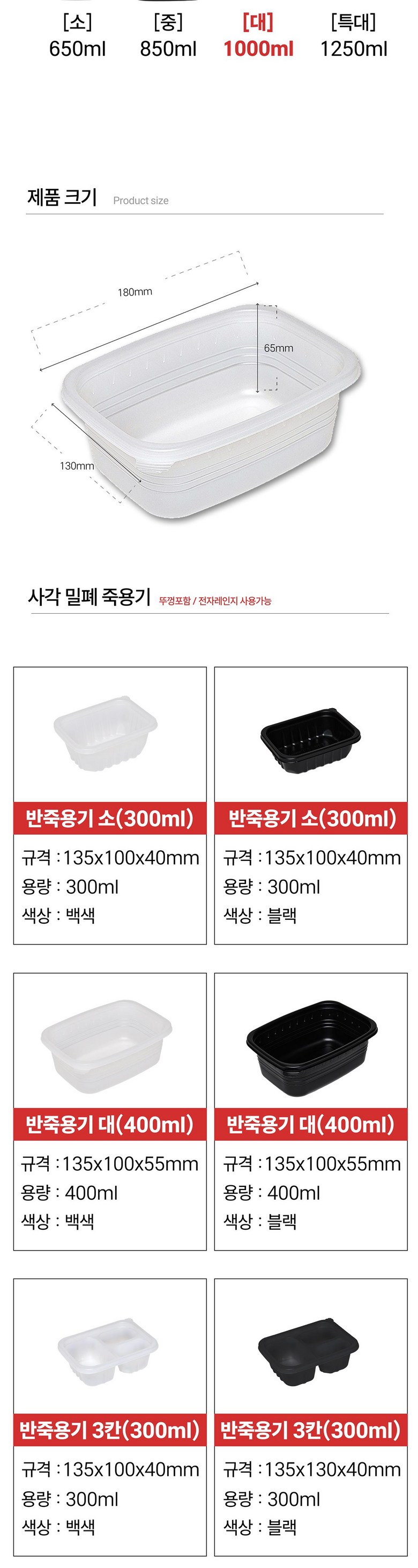 | 품명 및 모델명 | 체인컴퍼니 죽용기 대 1000ml | 재질 | pp |