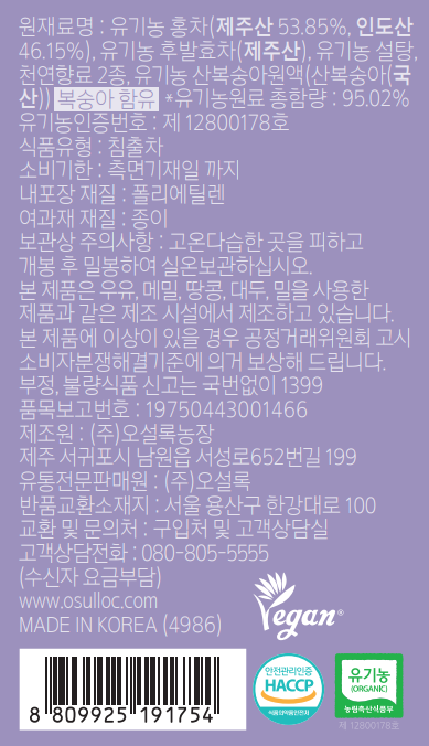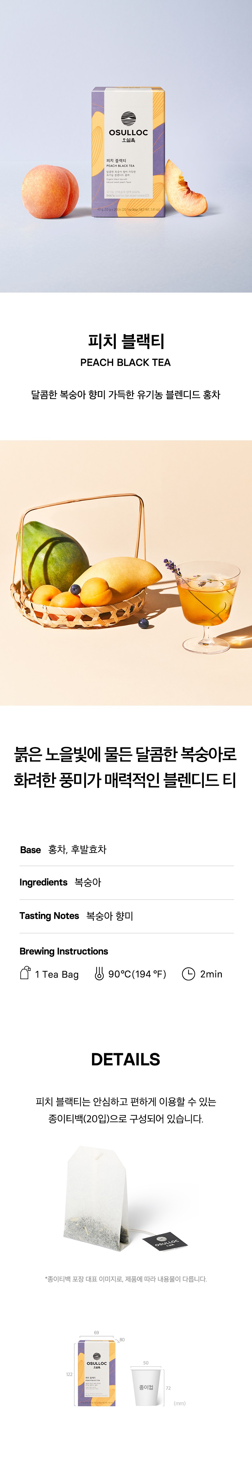 | 제품명 | 오설록 피치 블랙티 | 식품의 유형 | 컨텐츠 참조 |