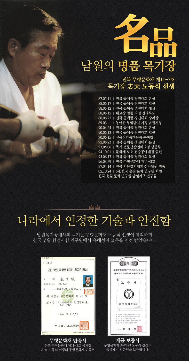 | 제조국(원산지) | 한국 | 제조자(수입자) | 남원목기공예사 |