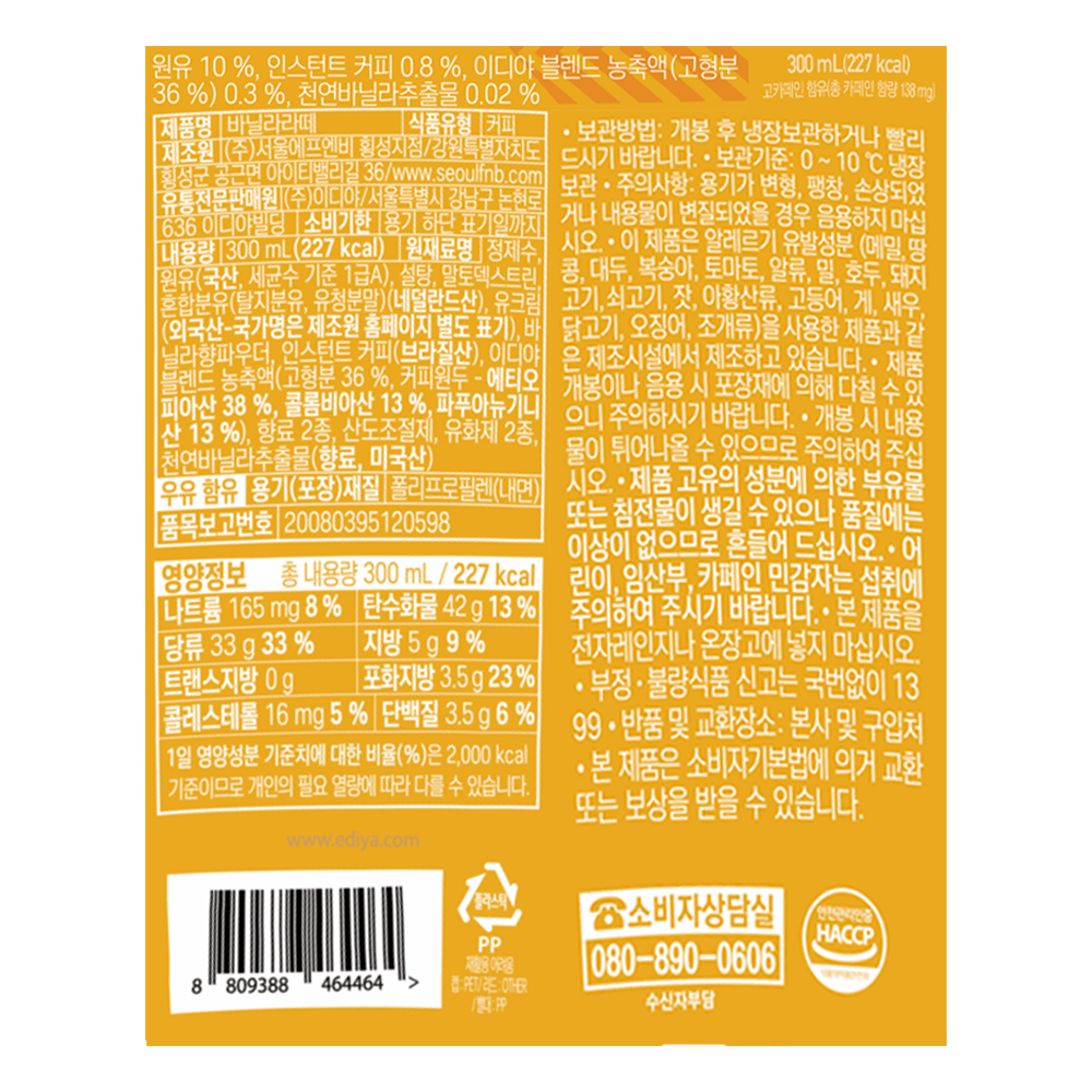 - 맛/향: 바닐라