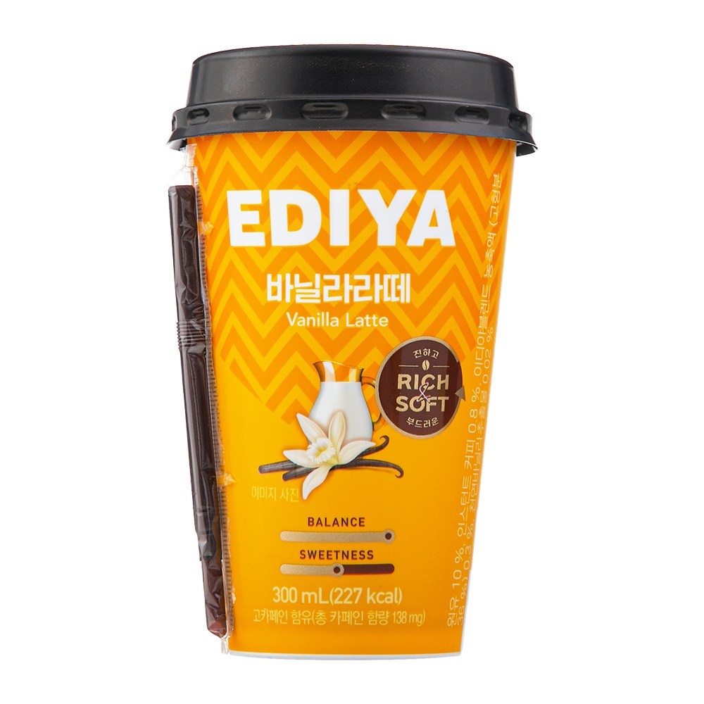 은은한 달콤함이 매력적인 바닐라라떼예요. 커피 전문 브랜드 이디야의 노하우로 그윽하고 부드러운 풍미를 그대로 담았죠. 1급A 원유를 사용해 뒷맛도 깔끔하답니다. 컵 옆에 빨대가 부착되어 있으니, 콕 꽂아 즐겨보세요.