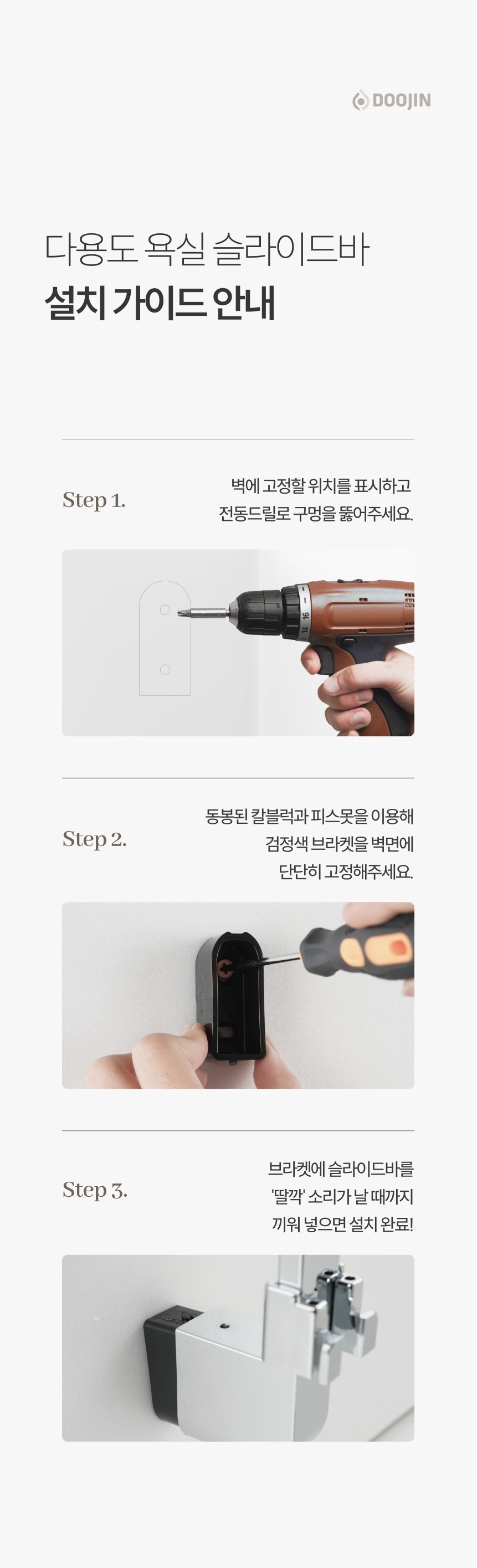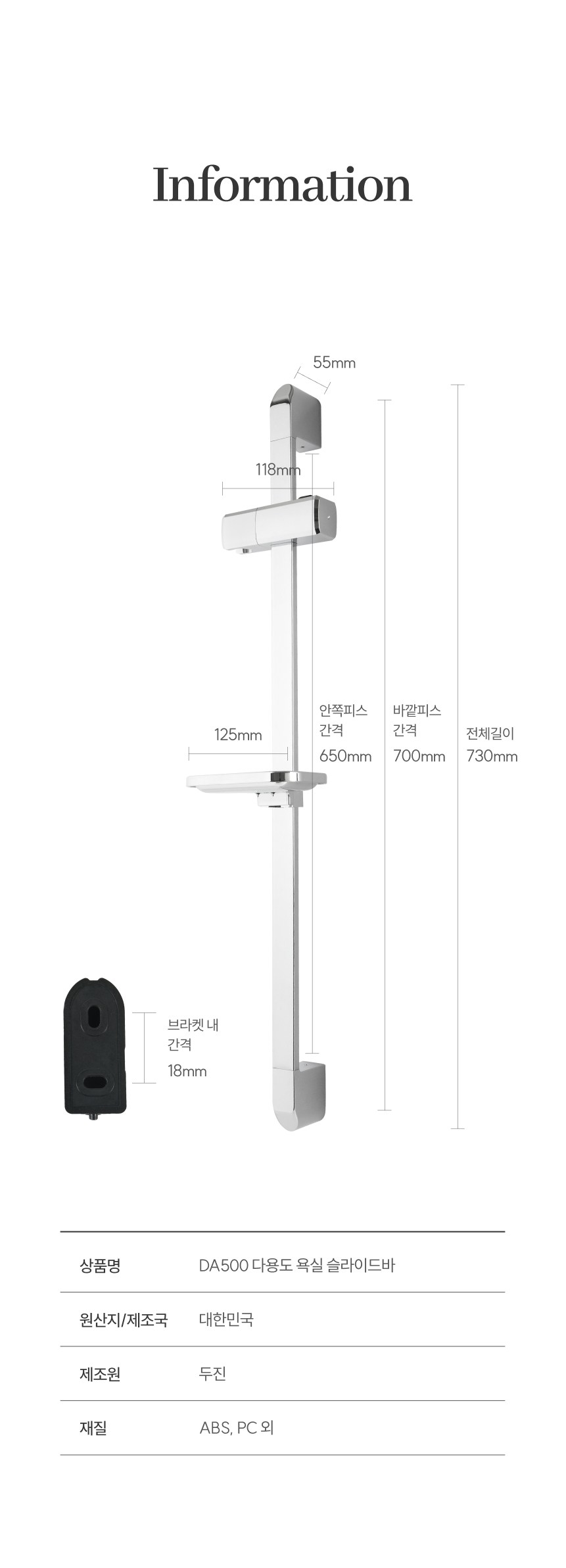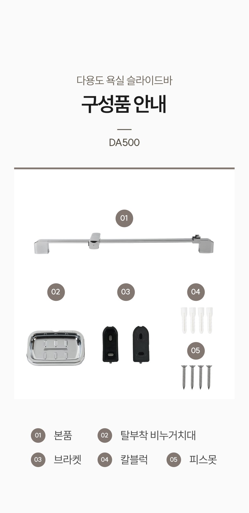 | 품명 및 모델명 | DA500 다용도 욕실 슬라이드 바 | 인증/허가 사항 | 해당없음 |