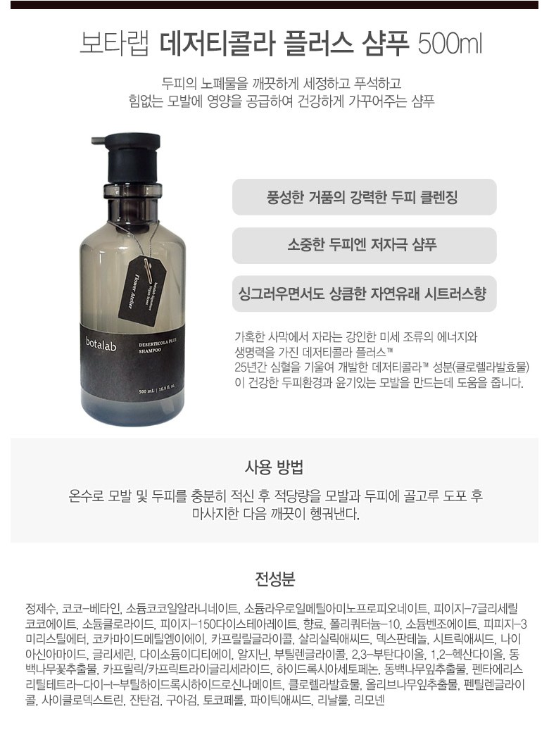 보타랩 데저티콜라 플러스 샴푸 정품, 500ml, 1개