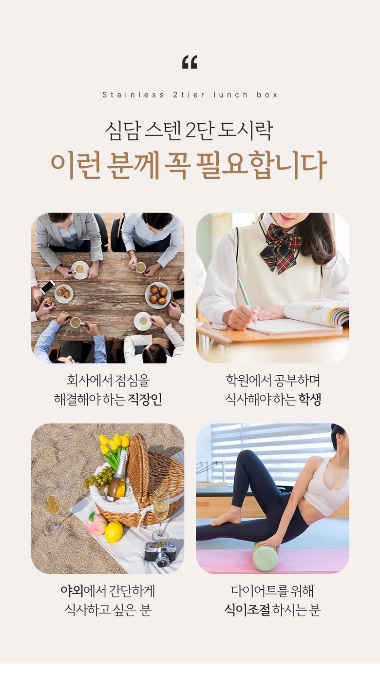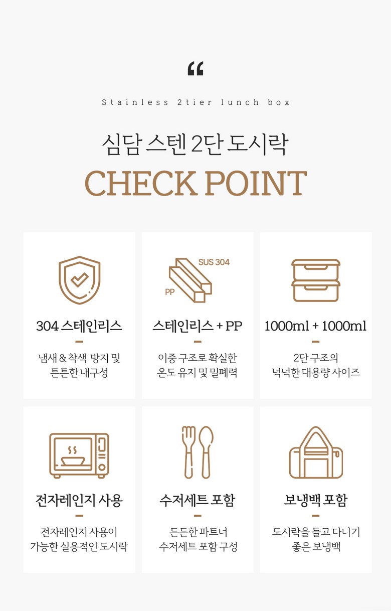 | 품명 및 모델명 | 심단 2단 스텐 도시락통 | 재질 | 304스테인레스,PP |