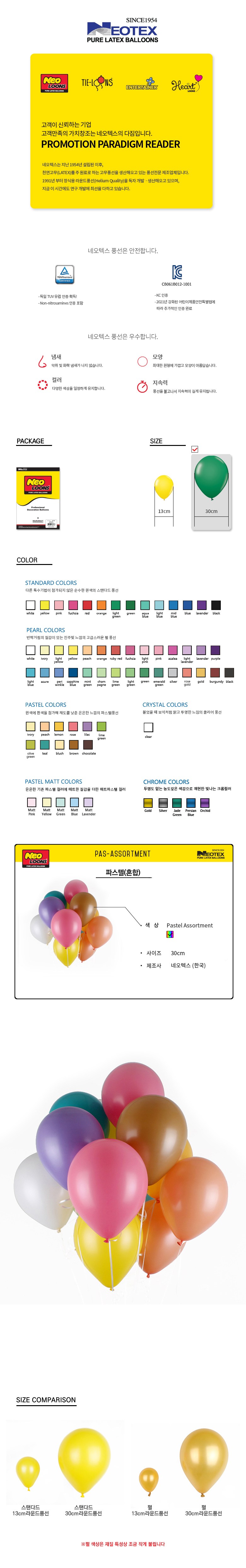 | 품명 및 모델명 | 네오텍스_30CM라운드풍선_파스텔 혼합 | 인증/허가 사항 | CB061B012-1001 |