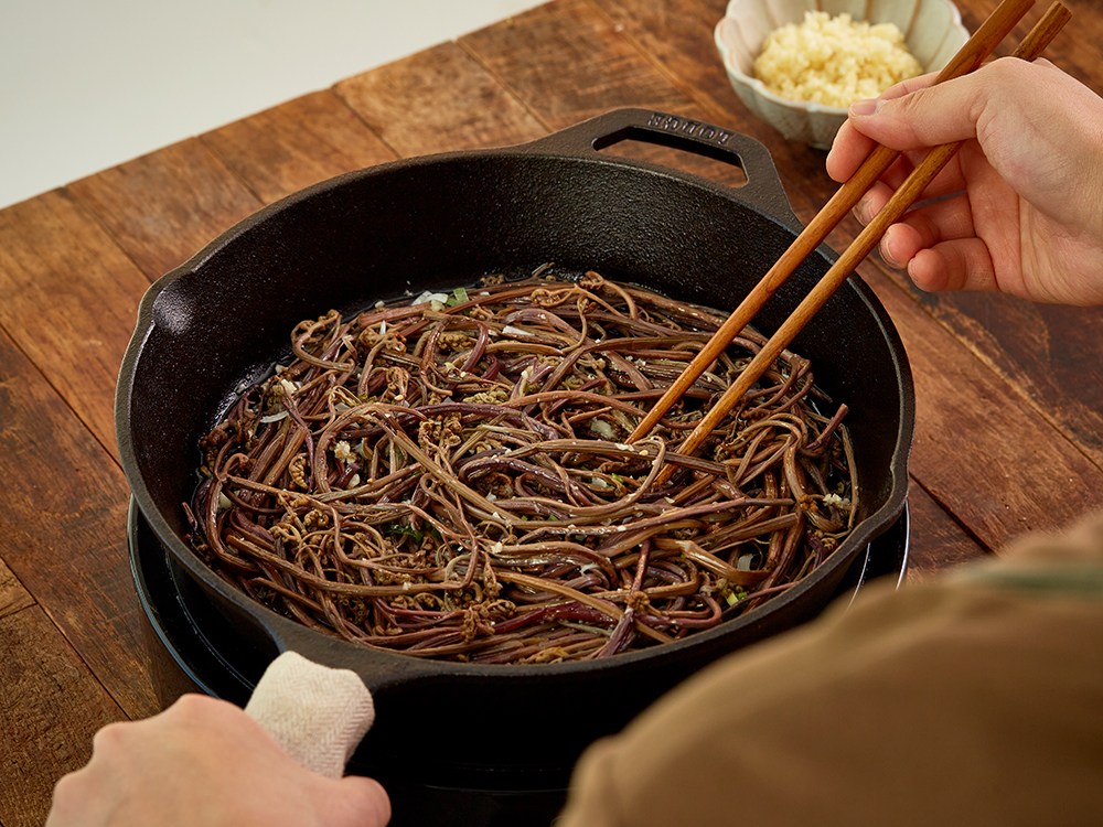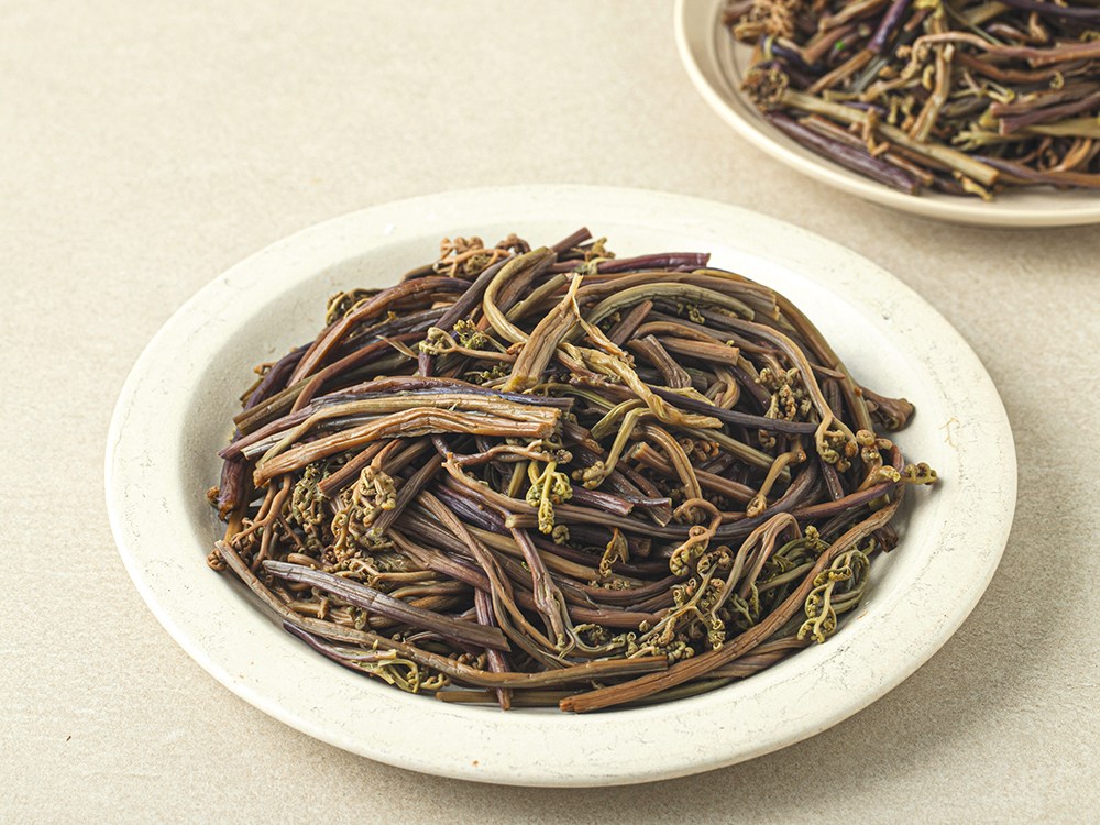 고사리는 손질도 번거롭지만, 데치는 과정에도 신경을 써야 하는데요. 자칫 질겨지거나 또는 풀어질 수 있기 때문이에요. 그래서 요리에 바로 사용할 수 있는 데친 고사리를 소개할게요. 한 번 헹군 뒤 들기름을 넣고 볶아도 좋고, 육개장에 활용해도 좋겠죠. 부드러우면서도 쫄깃한 식감이 요리에 한 끗을 더해줄 거예요.