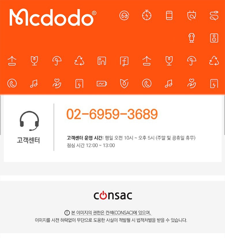 | 제조자(수입자) | Mcdodo / 컨섹(CONSAC) | 제조국 | 중국 |