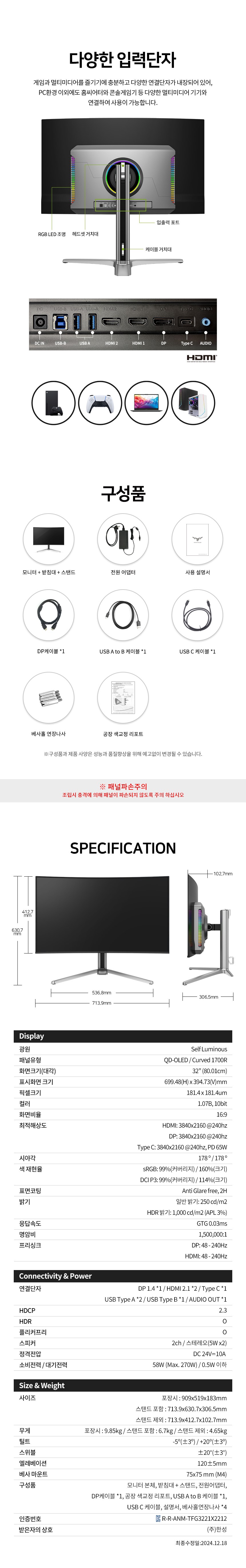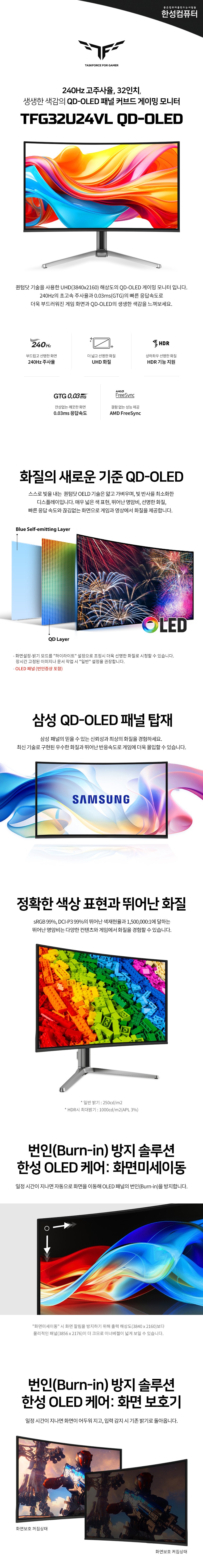 | 품명 및 모델명 | 한성컴퓨터 TFG32U24VL QD-OLED UHD 리얼 240 게이밍 USB Type-C 일반 / TFG32U24VL QD-OLED | KC 인증정보 | 유KC마크, R-R-ANM-TFG3221X2212 |