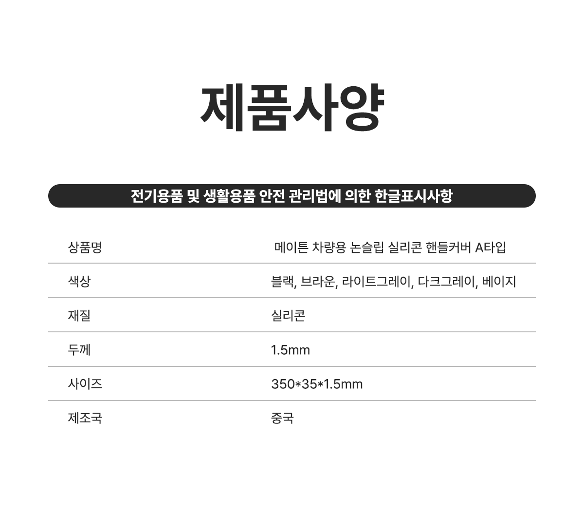 | 품명 및 모델명 | 메이튼 자동차 논슬립 실리콘 핸들커버 | 동일모델 출시년월 | 2025.01 |