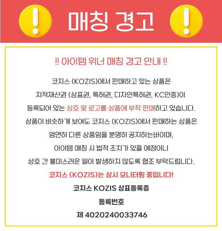 판매 부적격 상품 또는 허위과장광고 및 지식재산권을 침해하는 상품의 경우 신고하여 주시기 바랍니다.