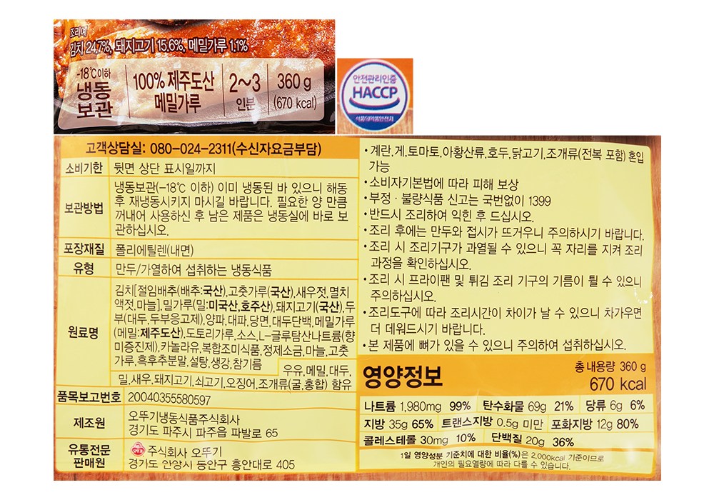 | 제품명 | 맛있는 제주메밀 전병만두 | 식품의 유형 | 컨텐츠 참조 |