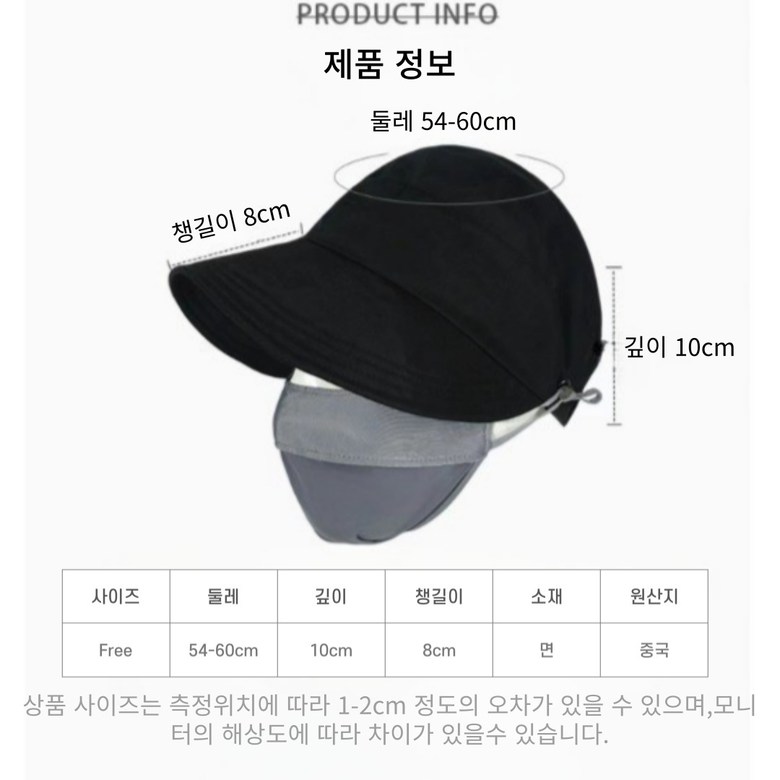 - 모자 종류: 캡모자/야구모자