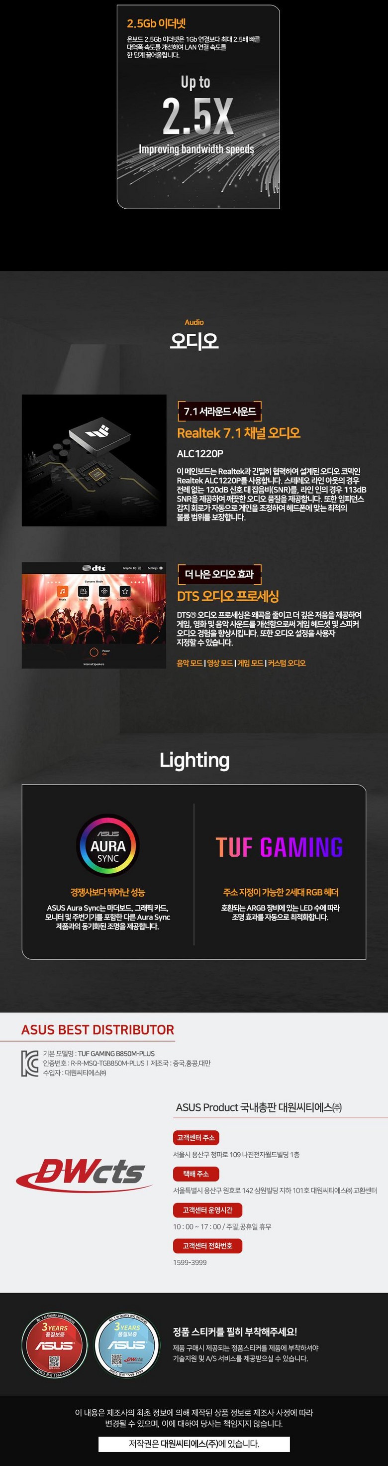 | 품명 및 모델명 | ASUS TUF Gaming B850M-PLUS 대원씨티에스 | KC 인증정보 | R-R-MSQ-TGB850M-PLUS |