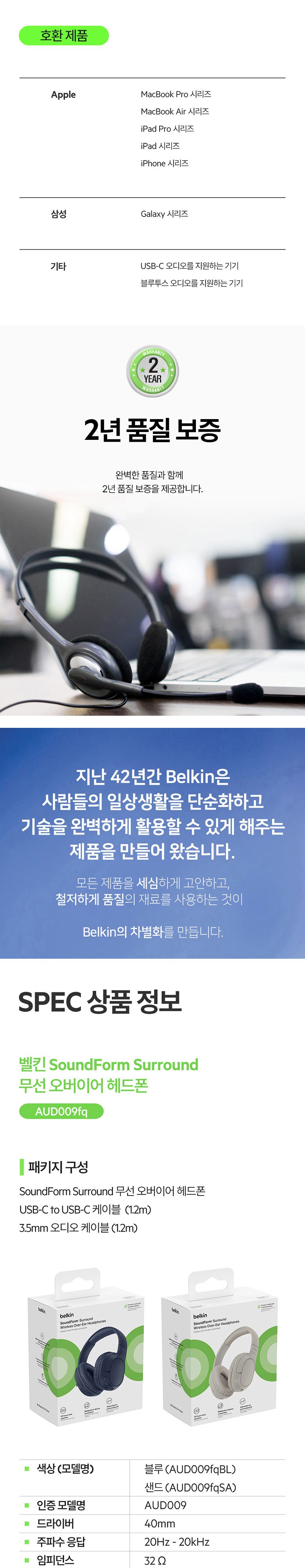 | 품명 및 모델명 | 벨킨 사운드폼 Surround 무선 오버이어 헤드폰 샌드 / 인증모델명: AUD009, 모델명: AUD009fqSA | KC 인증정보 | 본품 : R-R-K7S-AUD009 / 전지 : ZU101636-24001 |