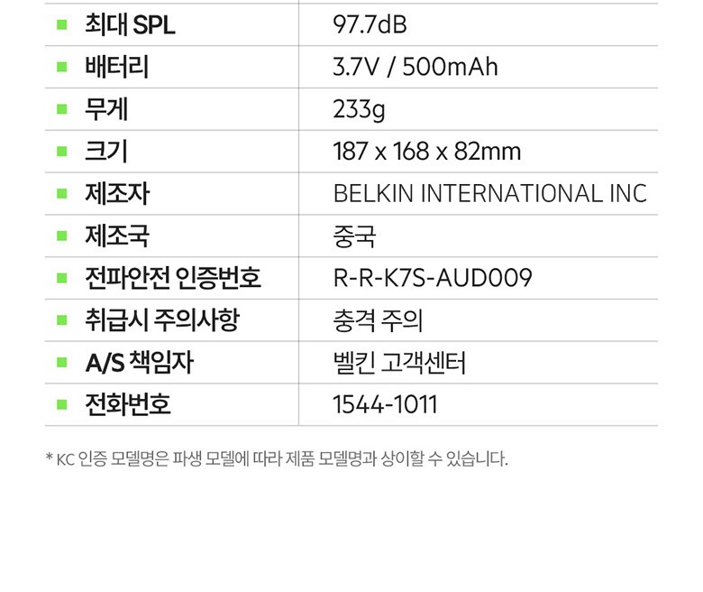 | 제조자(수입자) | BELKIN INTERNATIONAL INC, Dongguan iGlory Co., Ltd / 벨킨 유한회사 | 제조국 | 컨텐츠 참조 |