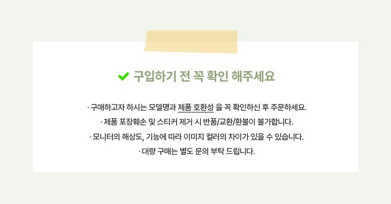 - ㆍ모니터 해상도의 차이로 인해 색상이나 이미지가 실제와 달라, 고객이 단순 변심으로 교환/반품을 무료로 요청하는 경우