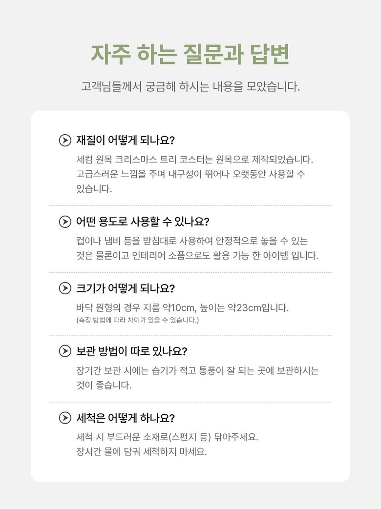 | 품명 및 모델명 | 세컴 원목 크리스마스 트리 코스터 내열 냄비 컵 받침 | 인증/허가 사항 | 해당없음 |
