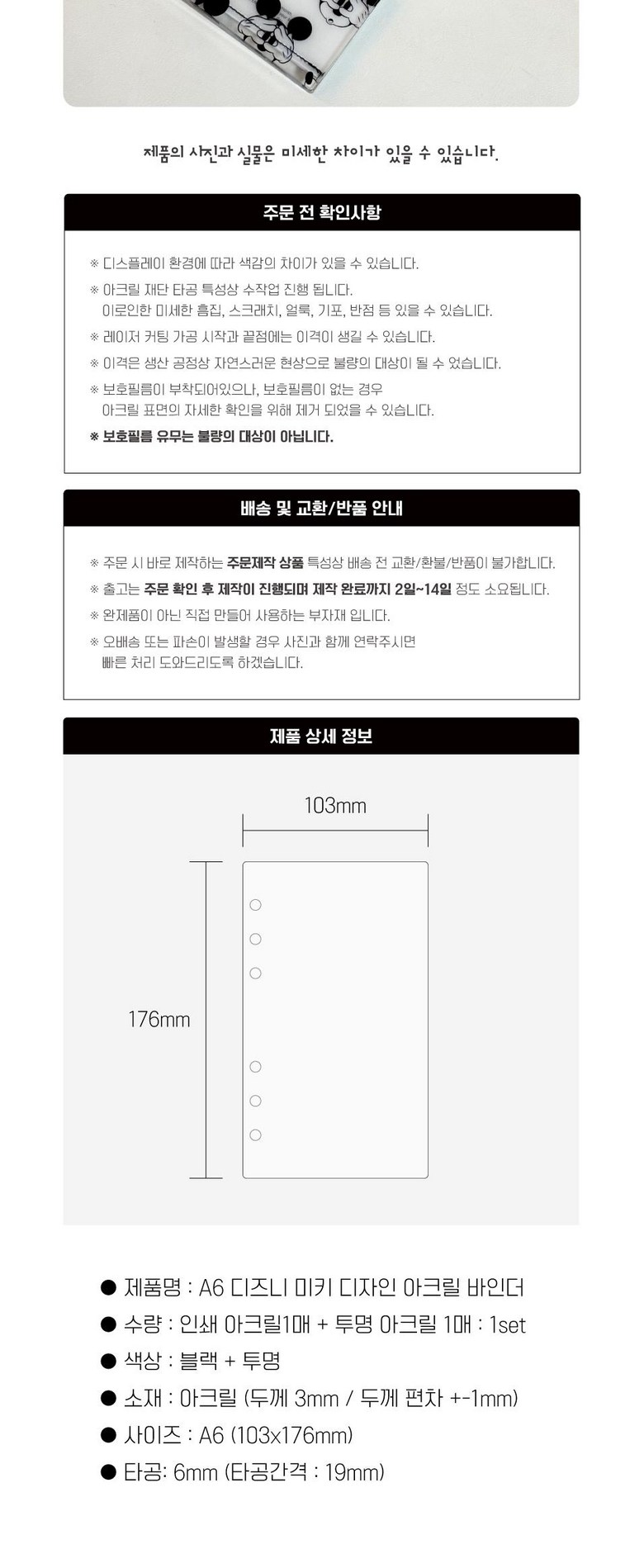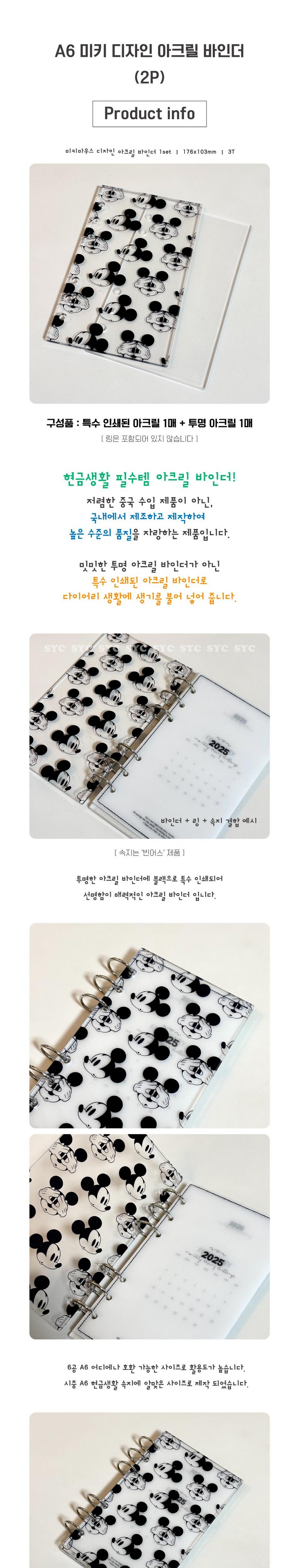 SYC 디즈니 미키 디자인 아크릴 바인더 A6 다이어리 현금생활