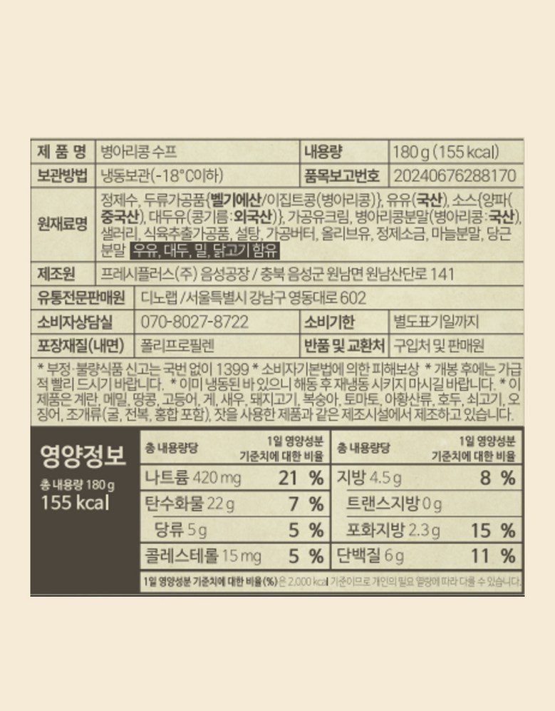 | 생산자 및 소재지 | 상품 상세페이지 참조 | 제조연월일, 소비기한 또는 품질유지기한 | 상품 상세페이지 참조 |