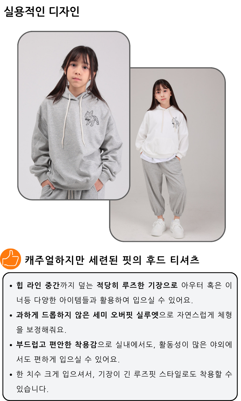 | 품명 및 모델명 | 마고주니어(MAGO.JR) 주니어용 오버핏 불독 후드 티셔츠 [키130/키140/키150/키160] | KC 인증정보 | 유/KC마크 |