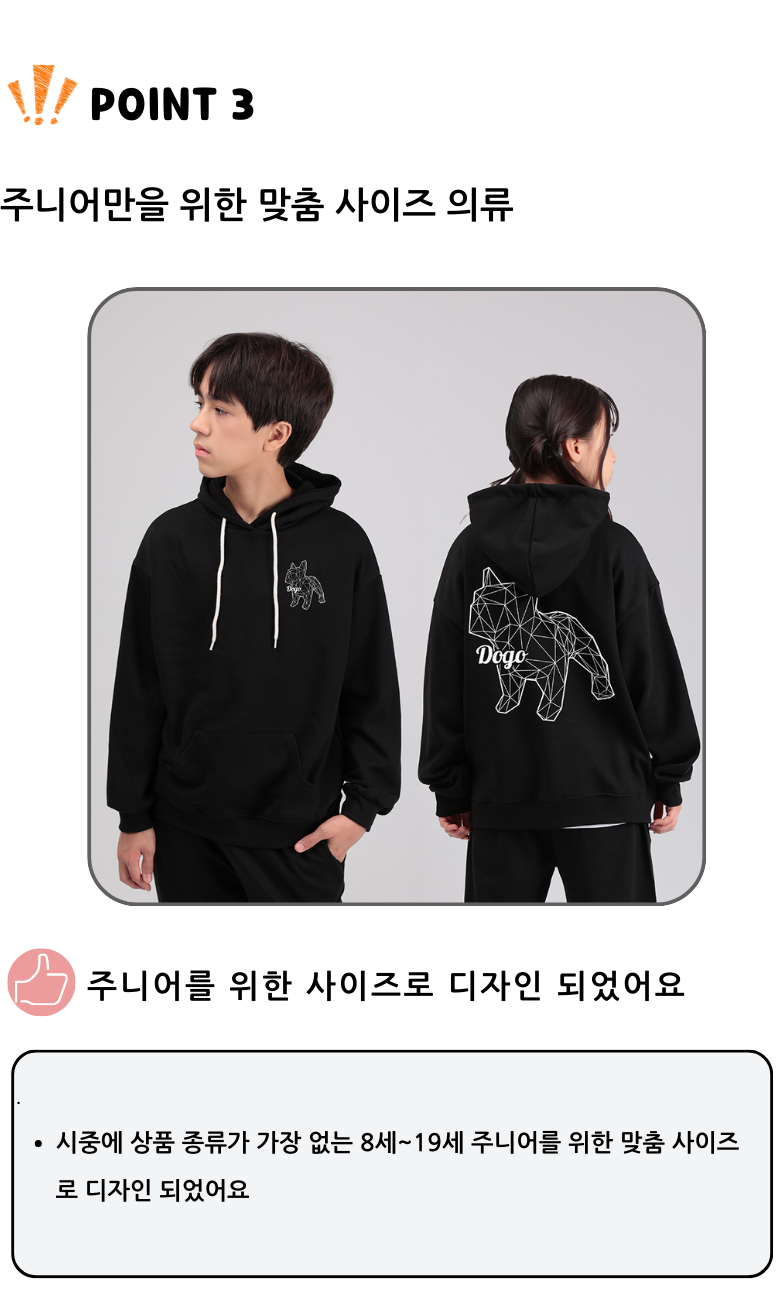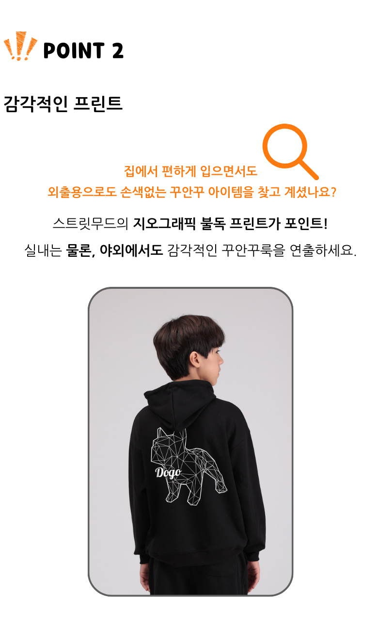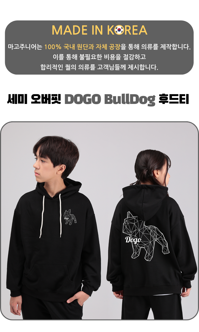 국내 생산 마고 주니어 오버핏 불독 그래픽 DOGO 후드티 키 110 120 130 140 150 160