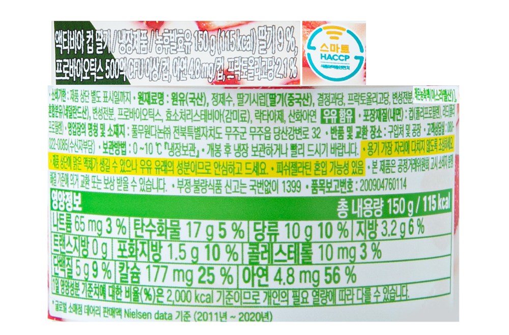 | 제품명 | 액티비아 컵 딸기 | 식품의 유형 | 농후발효유 |