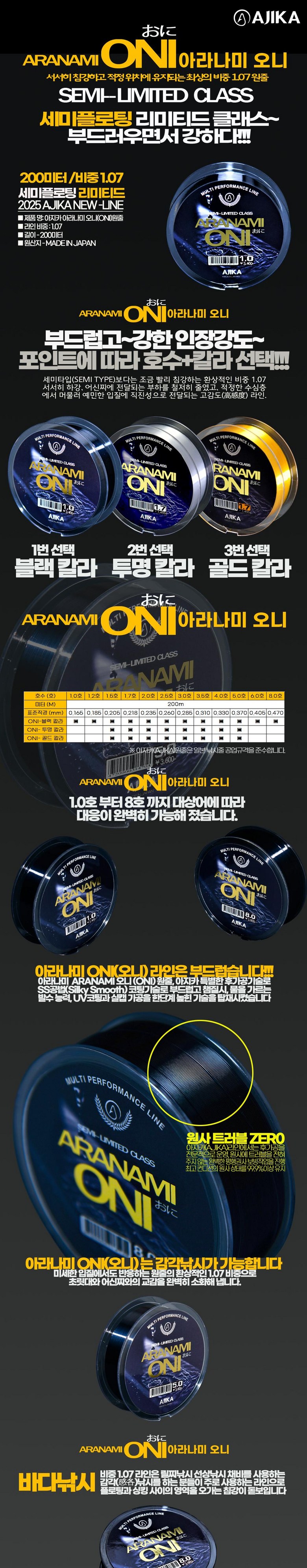 | 품명 및 모델명 | 아지카 아라나미 오니(oni)원줄 200m | 인증/허가 사항 | 상품 상세페이지 참조 |