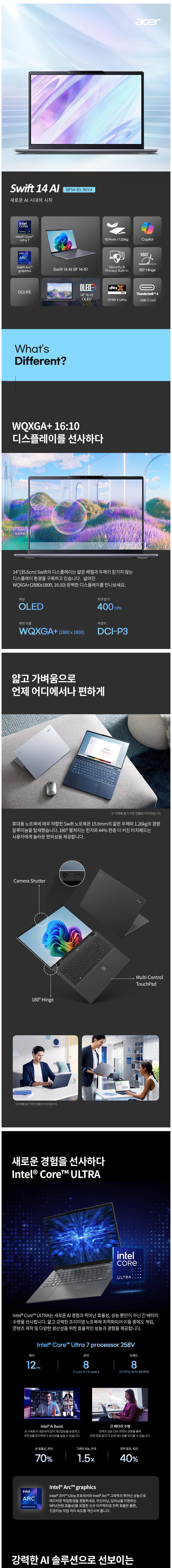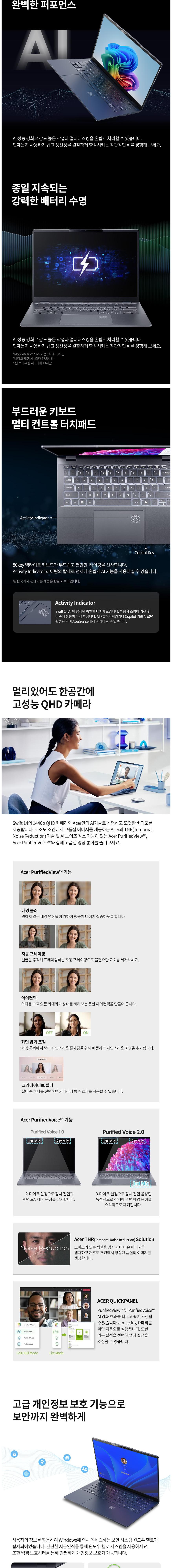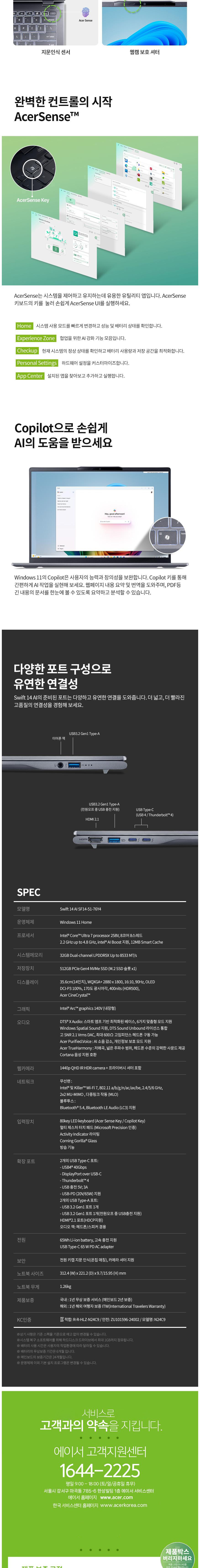 | 품명 및 모델명 | 에이서 스위프트 14 AI SF14-51-76Y4 노트북 (Ultra 7 258V. 32GB. 512GB. OLED WQXGA+ 35.6cm. 400nits. Win11 Home) 스팀 블루 SF14-51-76Y4 512GB 32GB WIN11 Home / N24C9 | KC 인증정보 | ZU101596-24002 / R-R-HLZ-N24C9 |