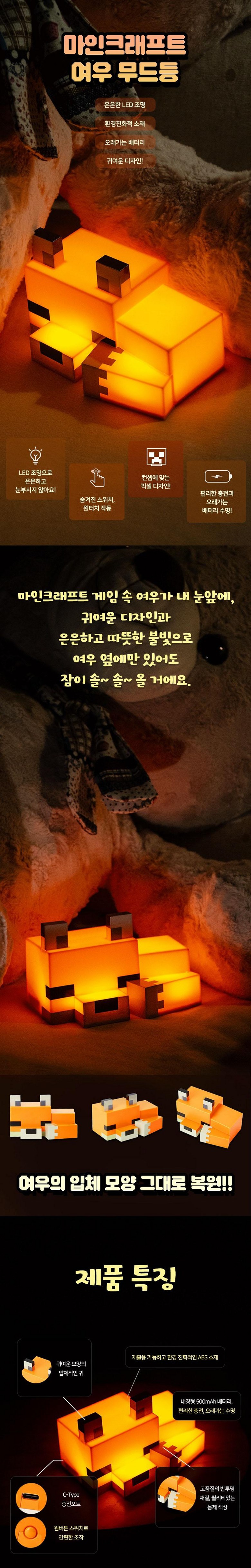 BEACON 마인크래프트 LED 무드등 3종 (꿀벌 무드등 여우 무드등 우파루파 무드등)