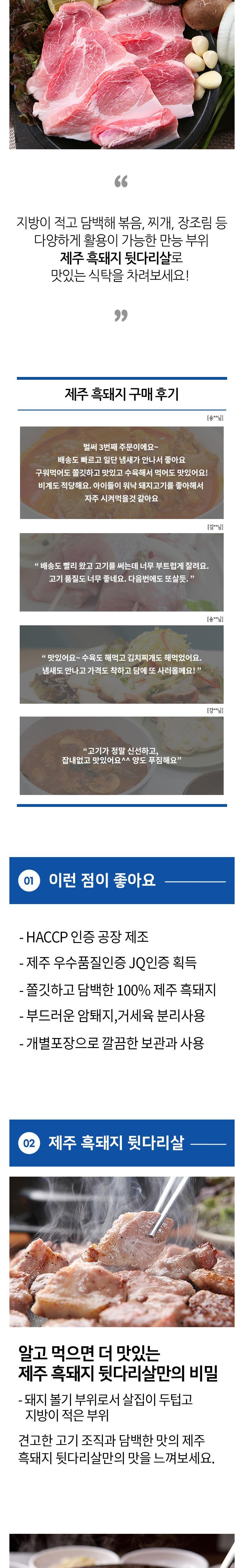 | 품목 또는 명칭 | 흑돼지 뒷다리살 | 포장단위별 내용물의 용량(중량),수량,크기 | 제주 흑돼지 뒷다리살500g/1팩 |