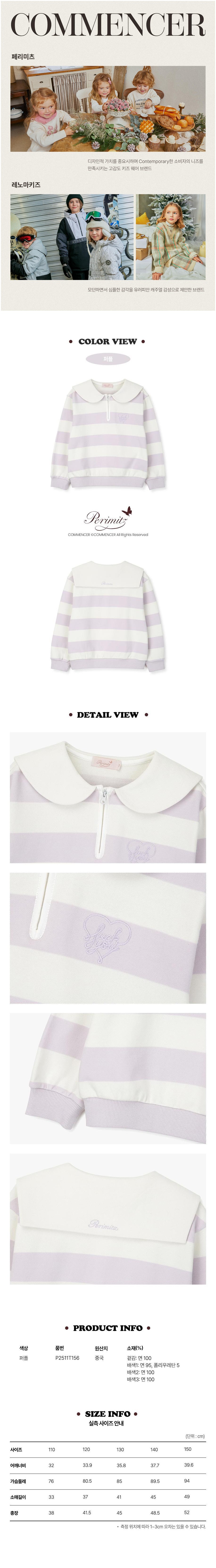 | 품명 및 모델명 | [페리미츠]여아 세일러카라ST맨투맨 퍼플(P2511T15615150) | KC 인증정보 | 유/KC마크 |