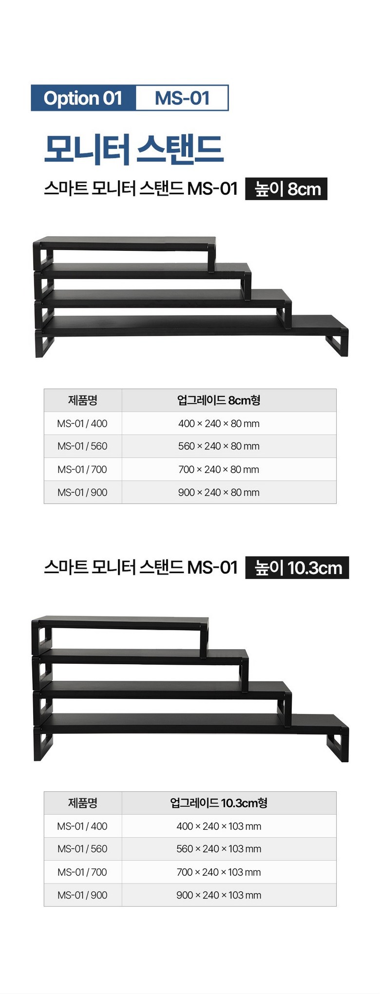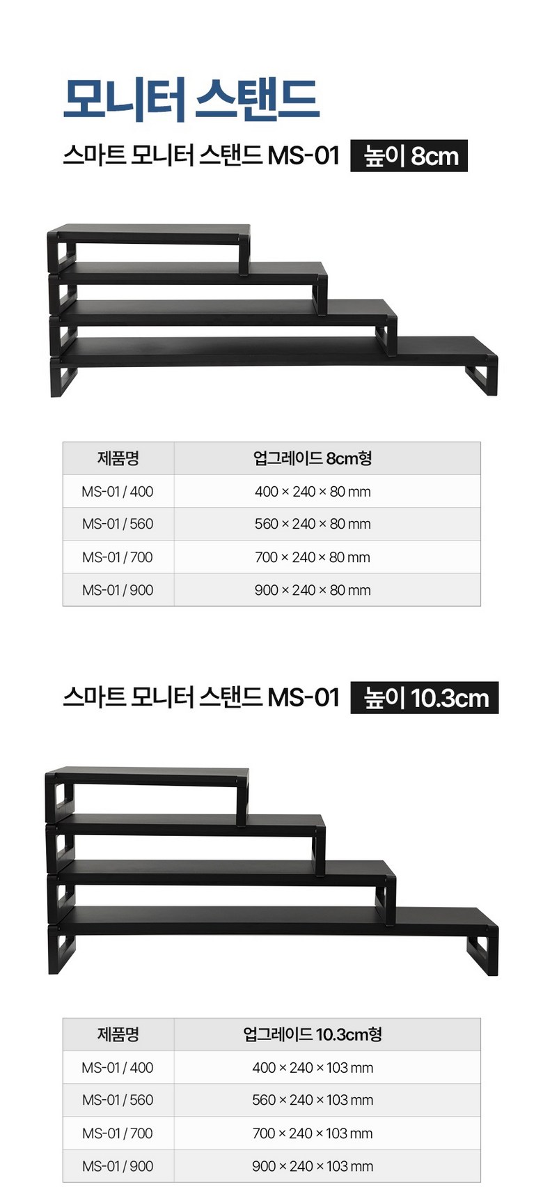 - 모니터받침대 높이: 1단