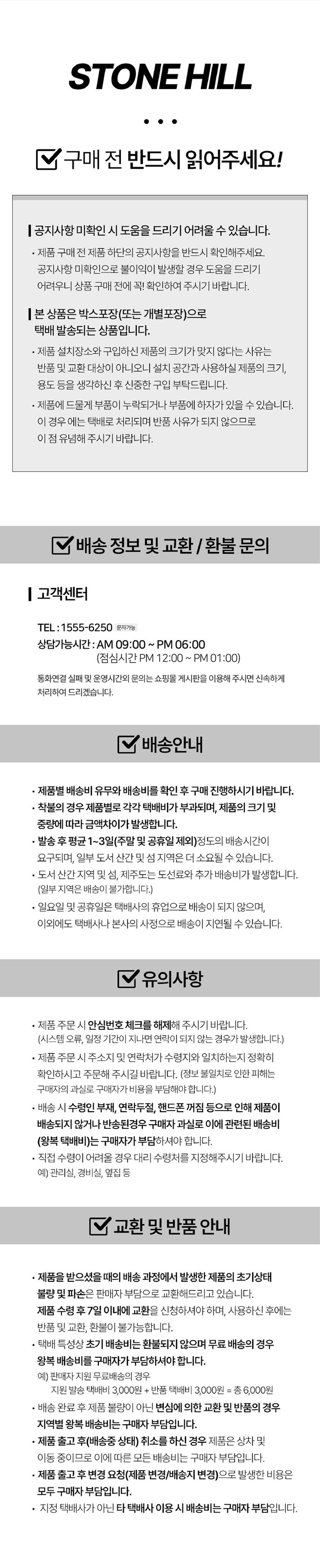 | 교환/반품 비용 (왕복비용) | 6,000원 - 단, 고객 변심의 경우에만 발생 - 도서산간 및 일부 지역 추가비용 발생 |