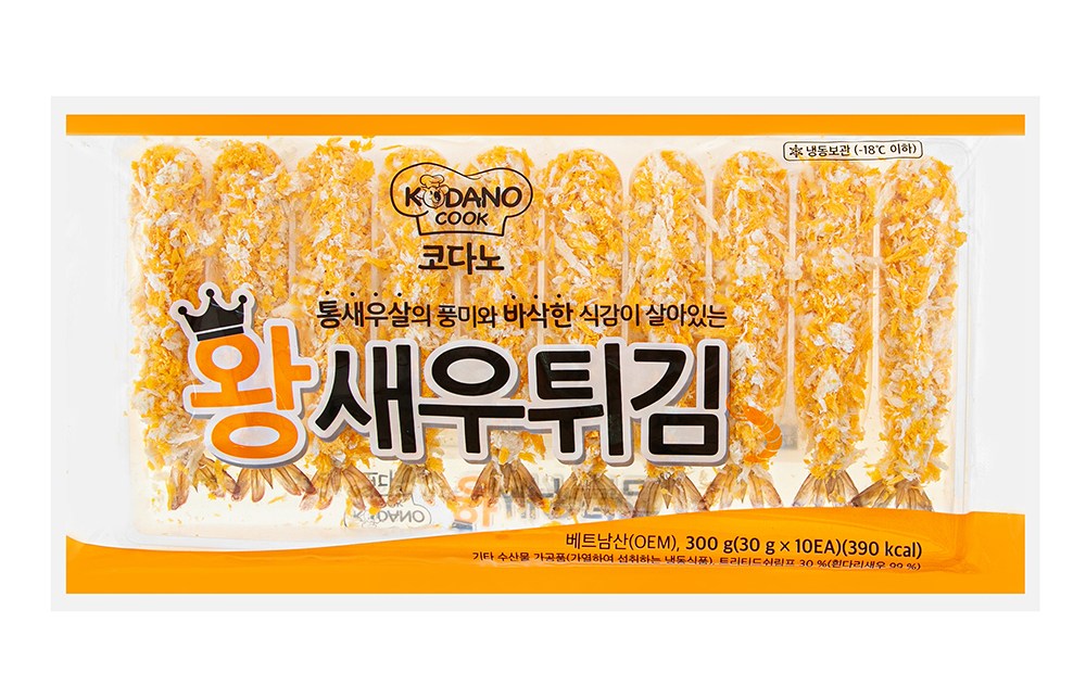 겉은 바삭하고 속은 촉촉한 왕새우튀김이에요. 머리를 깔끔하게 손질한 트리티드 쉬림프에 튀김옷을 묻혔답니다. 노릇노릇하게 튀겨 한 입 베어 물면, 고소한 맛이 입안 가득 진하게 느껴지죠. 타르타르 소스를 준비해 곁들이셔도 맛있고요. 우동, 메밀국수의 토핑으로 활용하셔도 좋아요.