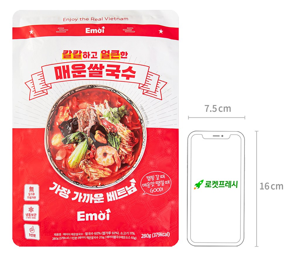 베트남 하노이식 요리를 선보이는 브랜드, 에머이. 직접 매장에 가야만 즐길 수 있었던 매운 쌀국수를 간편하게 즐겨보세요. 탱글탱글한 쌀국수 면과, 각종 고명이 함께 담겨 있어요. 소고기부터 양파, 대파, 표고버섯까지. 강렬한 매운맛과 구수하고 깔끔한 끝맛이 매력적이랍니다. 우리 집에서 가장 가까운 베트남, 지금 바로 만나보세요.
