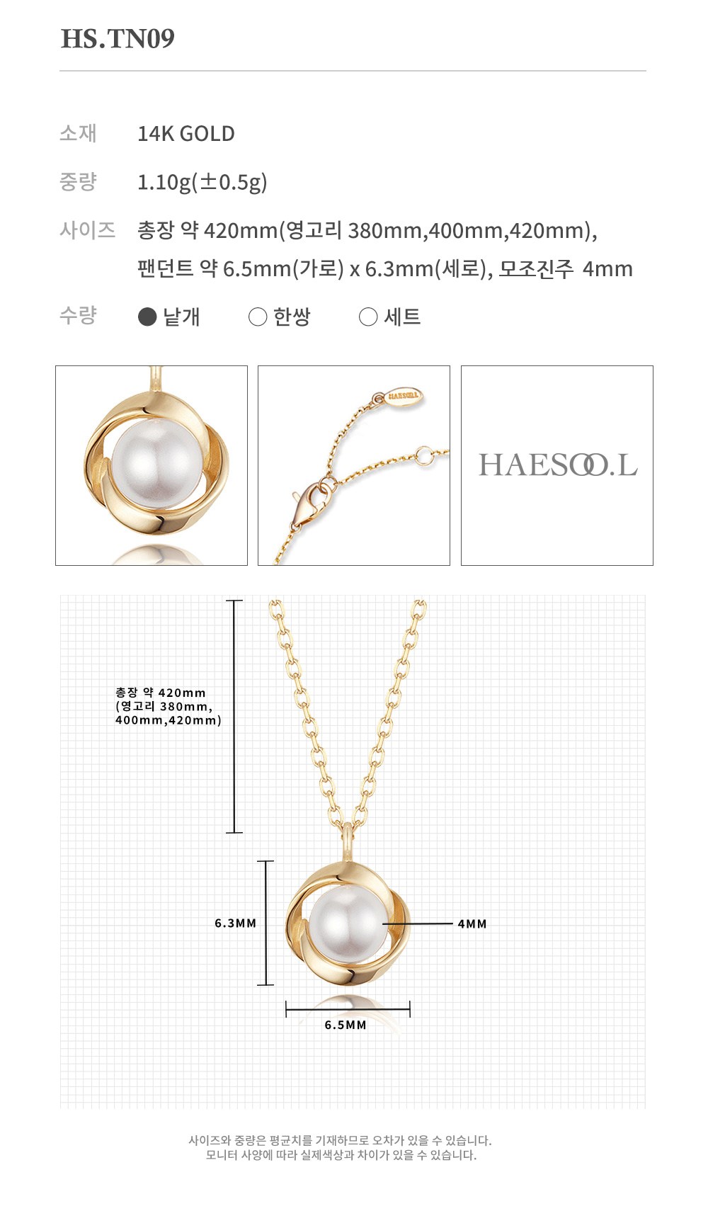 | 치수 | 컨텐츠 참조 | 착용 시 주의사항 | -제품 착용 후 제품에 스크래치 발생이나 변식이 최소화될 수 있도록 부드러운 천으로 닦아 폴리 백에 보관해주시기 바랍니다. -물,향수,화장품에 의해 변색되거나 마찰,충격 등에 의해 스크래치가 생길 수 있으므로 충분한 주의 바랍니다. -14K 골드 제품 특성상 순금의 함유량이 높고 연성을 지니고 있어 휘어질 수 있습니다. -진주는 유기질 보석으로 광택이 손상될 수 있으니 착용 및 보관에 주의바랍니다. |